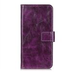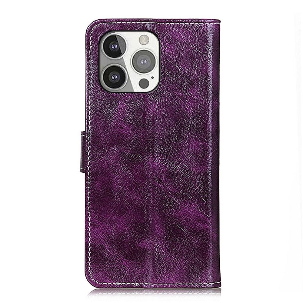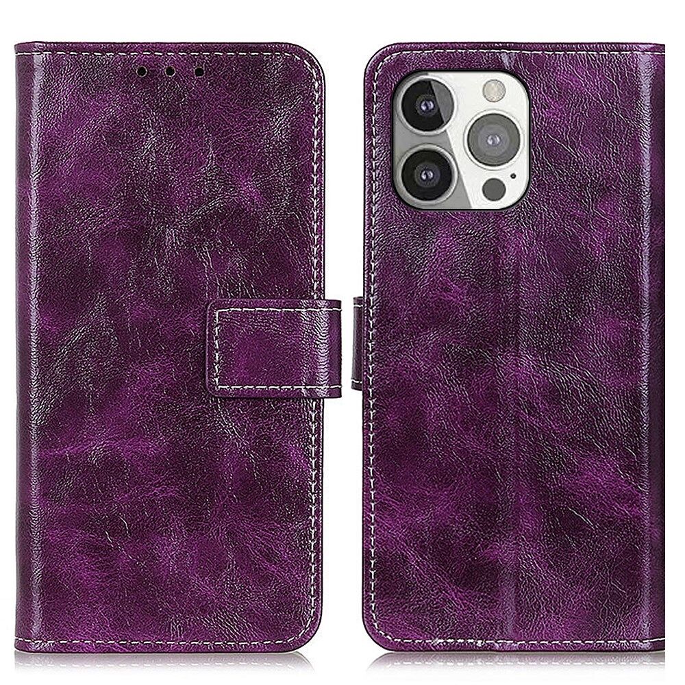 Crazy Horse Texture Vintage Style Wallet PU Leather Phone Cover Stand Case for iPhone 13 Pro - Purple