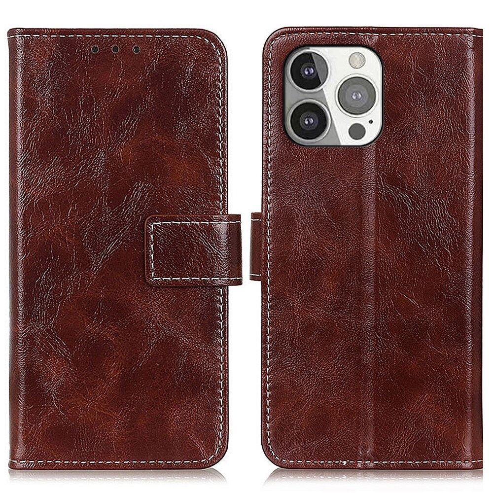 Crazy Horse Texture Vintage Style Wallet PU Leather Phone Cover Stand Case for iPhone 13 Pro - Brown