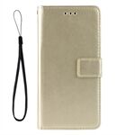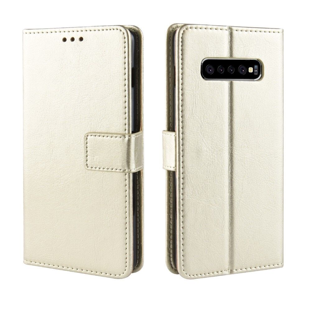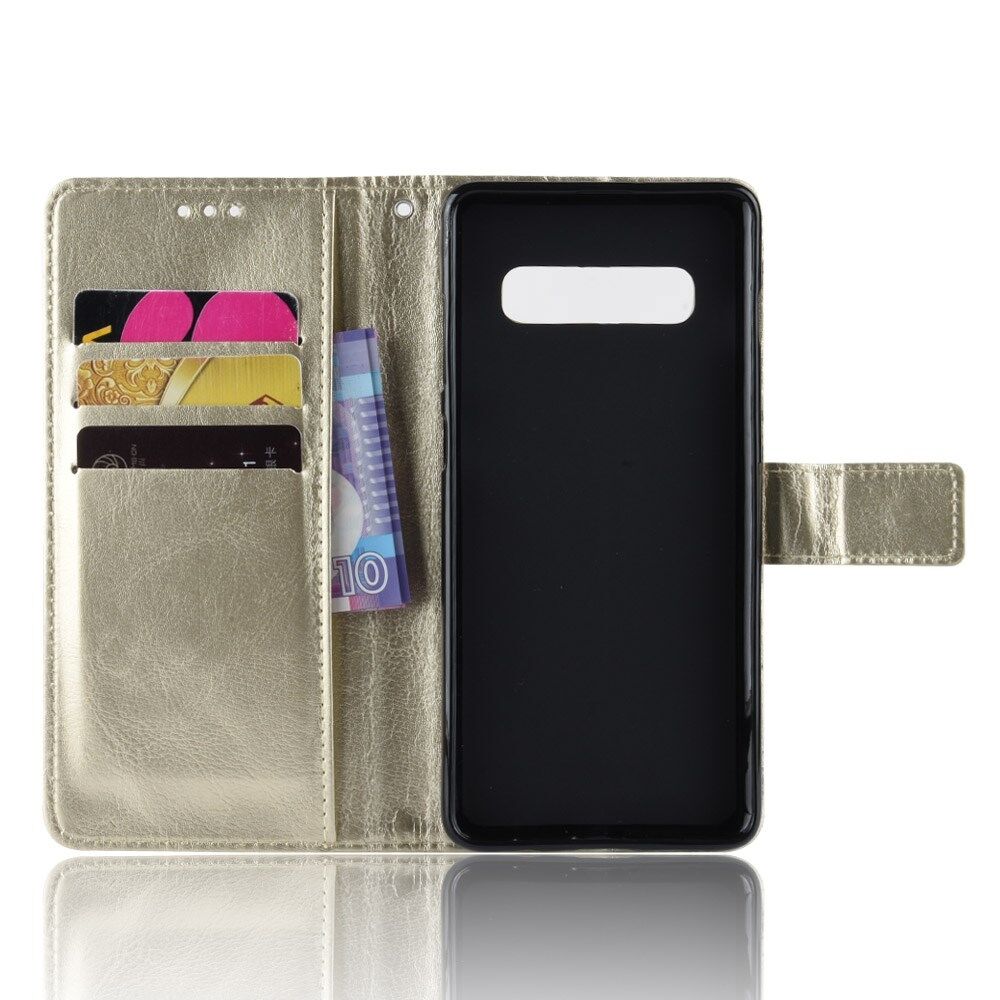 Crazy Horse Wallet Leather Phone Case with Strap for Samsung Galaxy S10 Plus - Gold