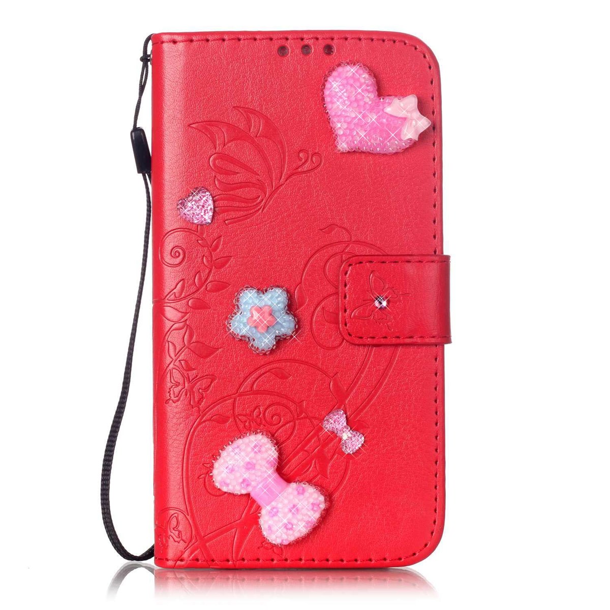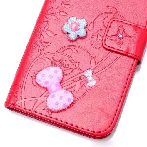 The case protects both the front and back of your phone, and is crafted in gorgeous PU leather quality, as well as decorative loops, hearts and flowers.