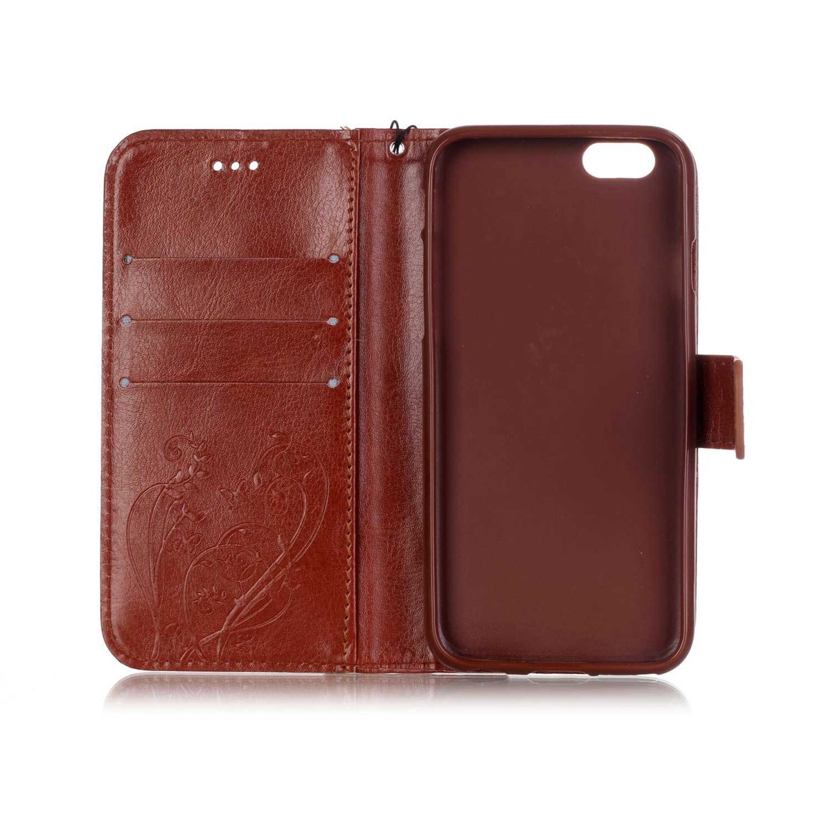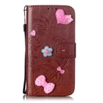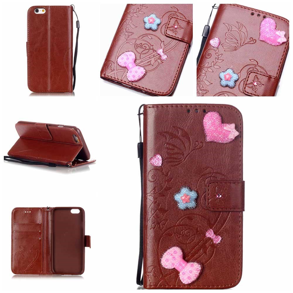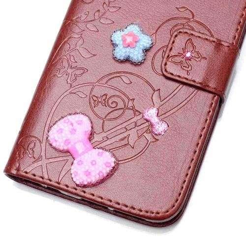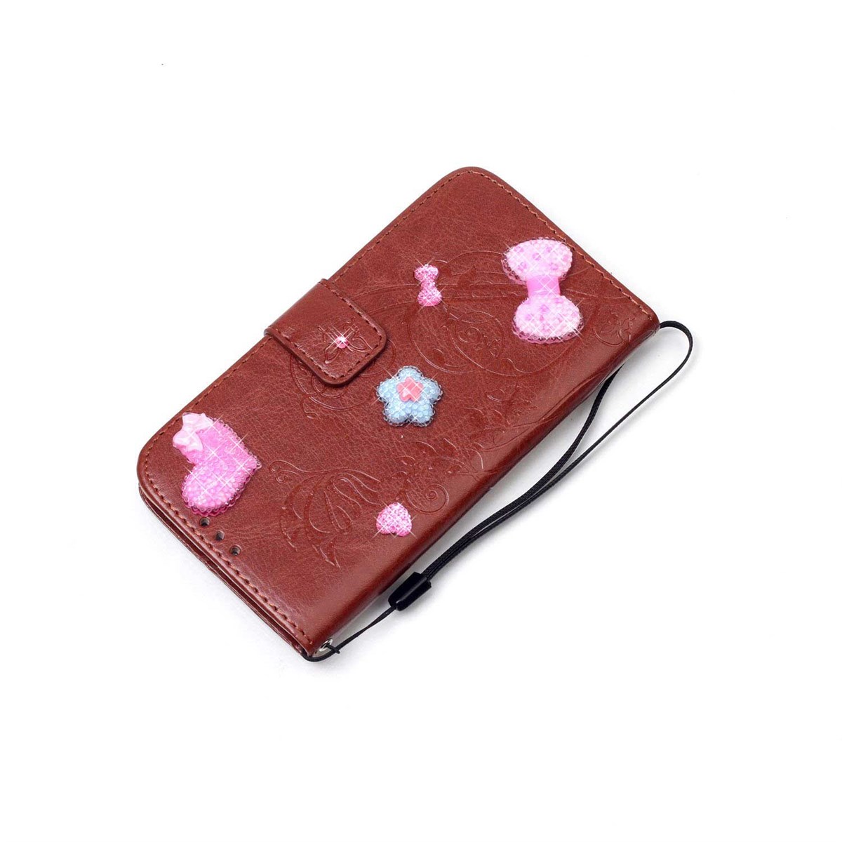 The case protects both the front and back of your phone, and is crafted in gorgeous PU leather quality, as well as decorative loops, hearts and flowers.