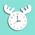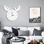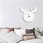 Cute Moose Decorative Quartz Wall Clock Battery Operated Silent Clock for Living Room, Bedroom - White