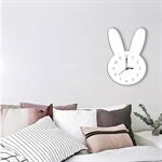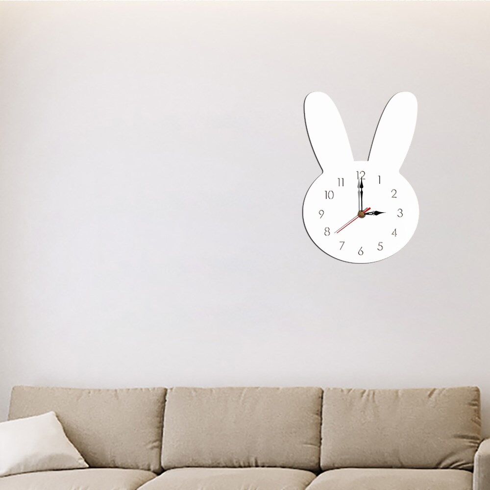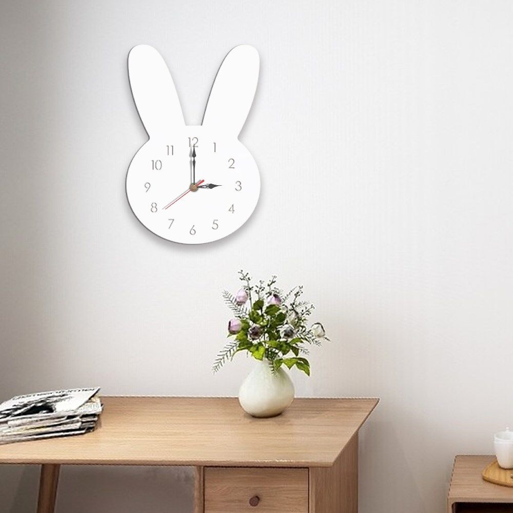 Cute Rabbit Decorative Quartz Wall Clock Battery Operated Silent Clock for Living Room, Bedroom - White