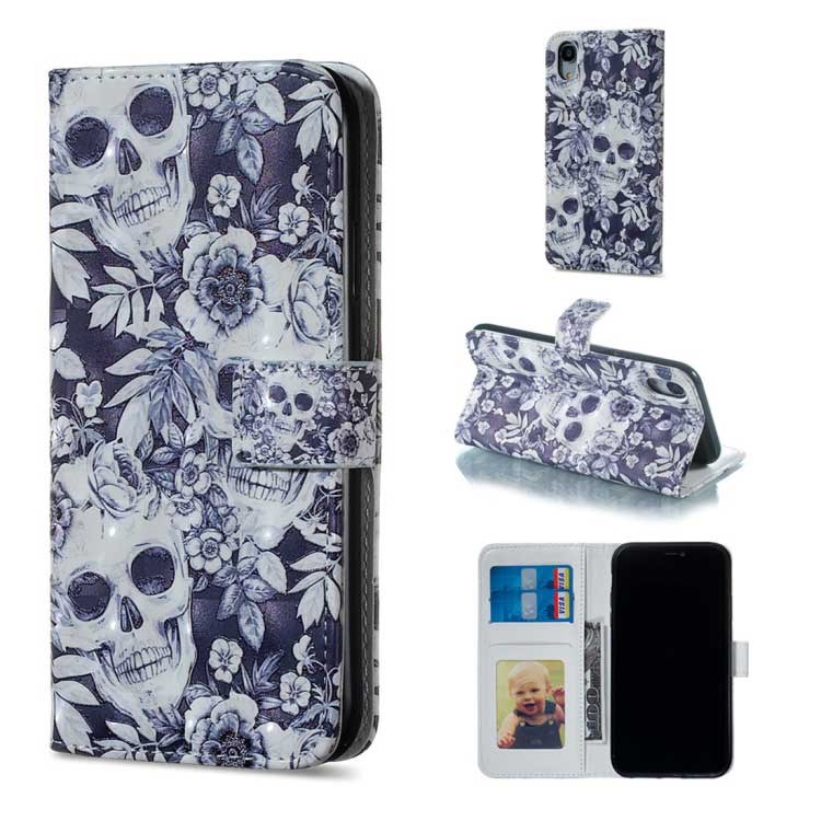 Delicious Short Wallet Case for iPhone XR - Skull & Flower