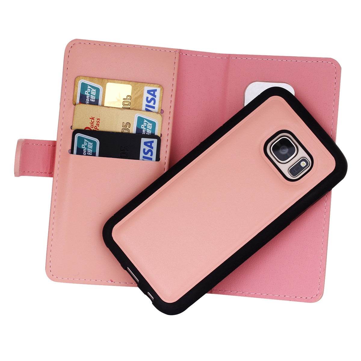 Delux multifunction case with wallet and removable cover for Samsung Galaxy S7 edge - Delicate pink