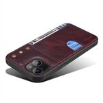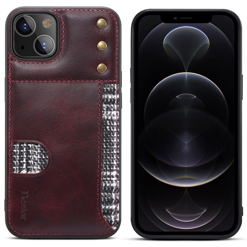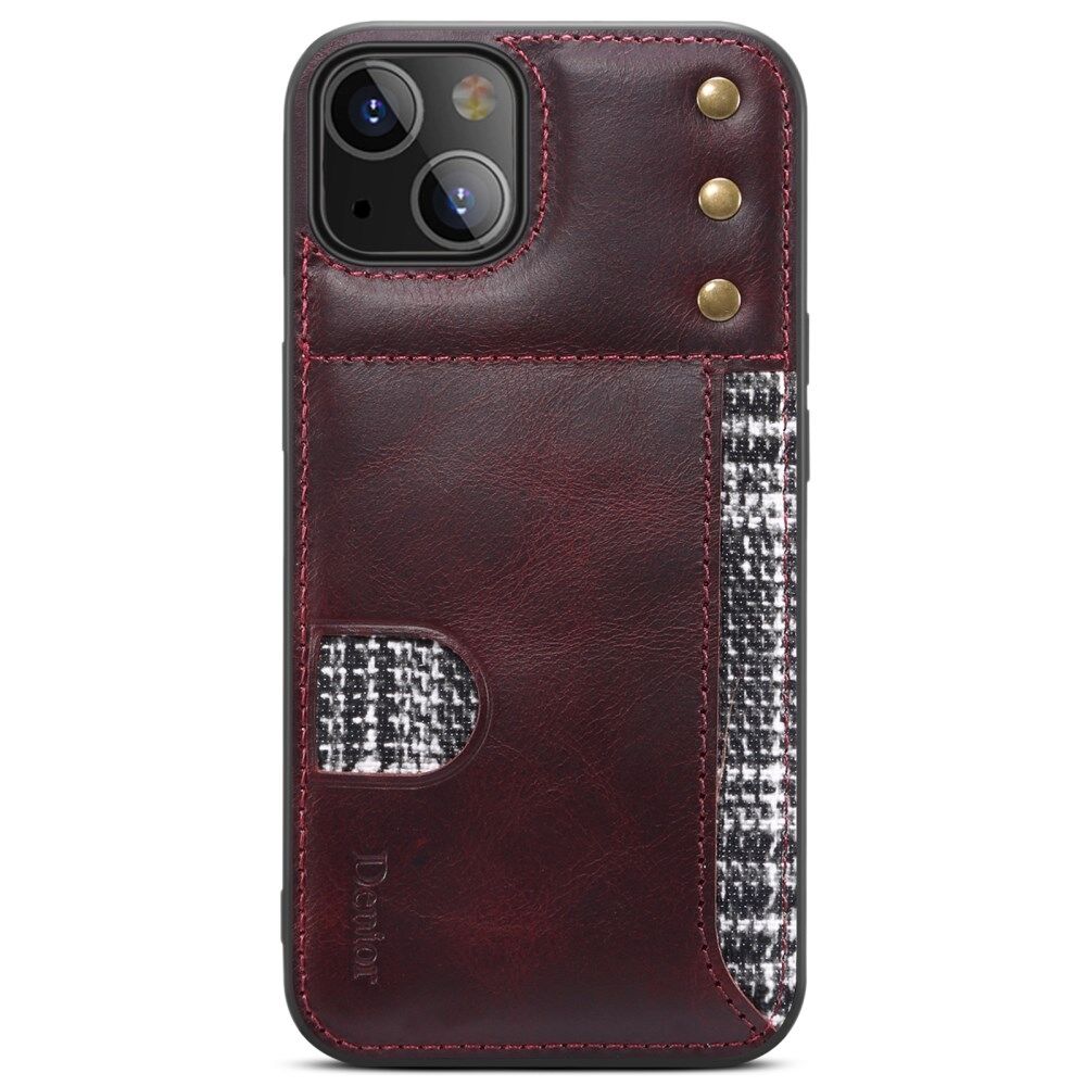 DENIOR For iPhone 13 mini 5.4 inch Card Holder Waxy Genuine Leather Coated TPU Phone Case Cover - Red