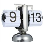 Desktop Retro Flip Over Clock Numerical Table Stand Clock Stainless Steel Gear Operated Flip Quartz Clock for Home Decor
