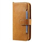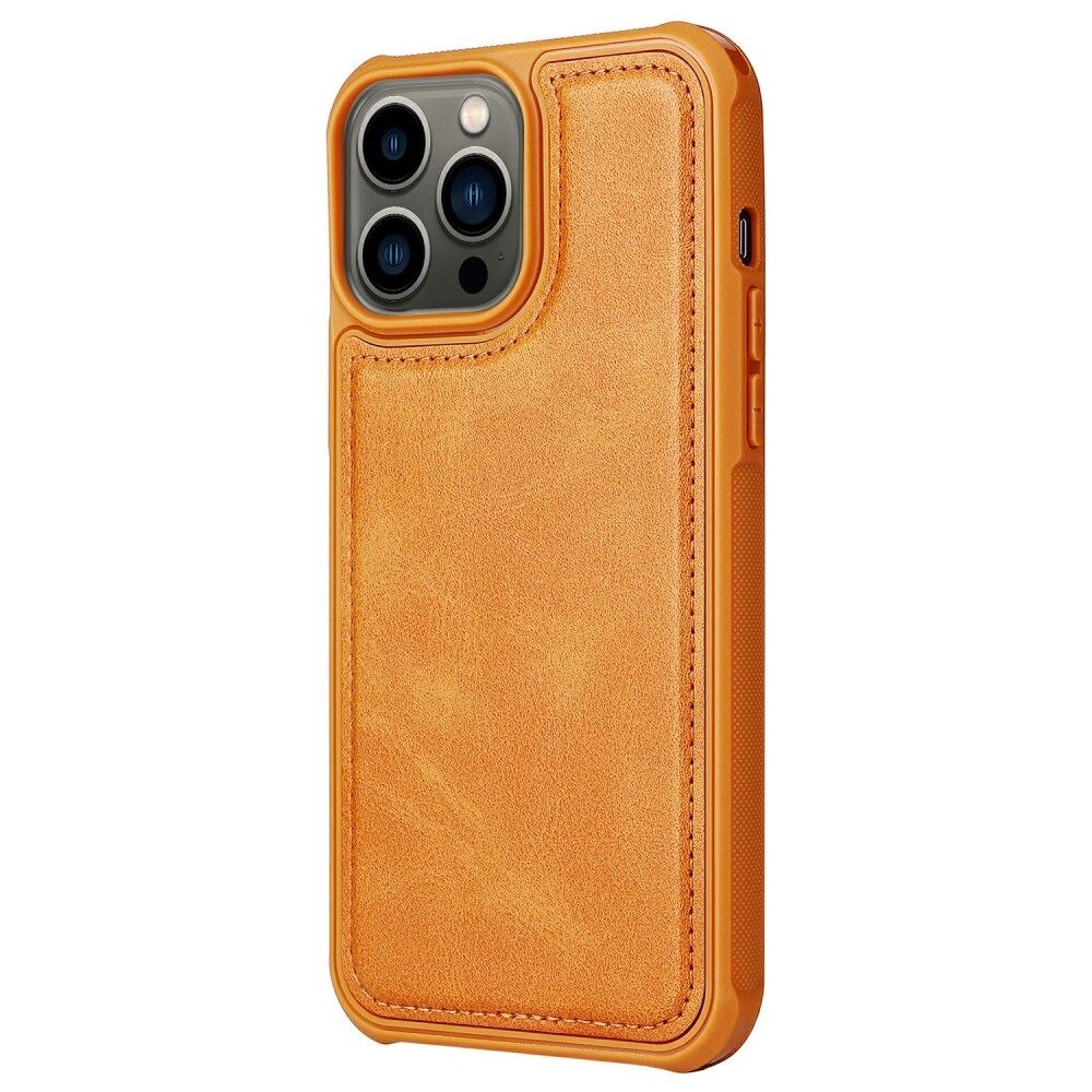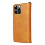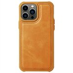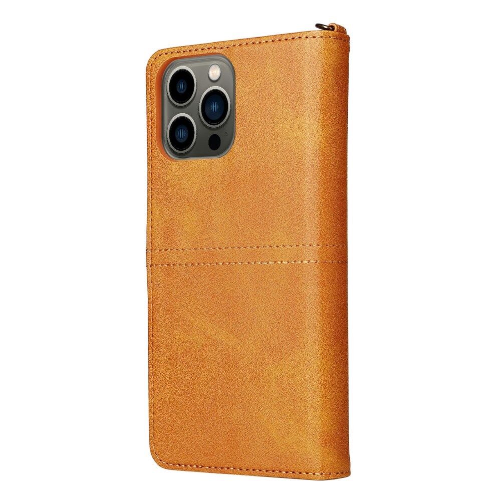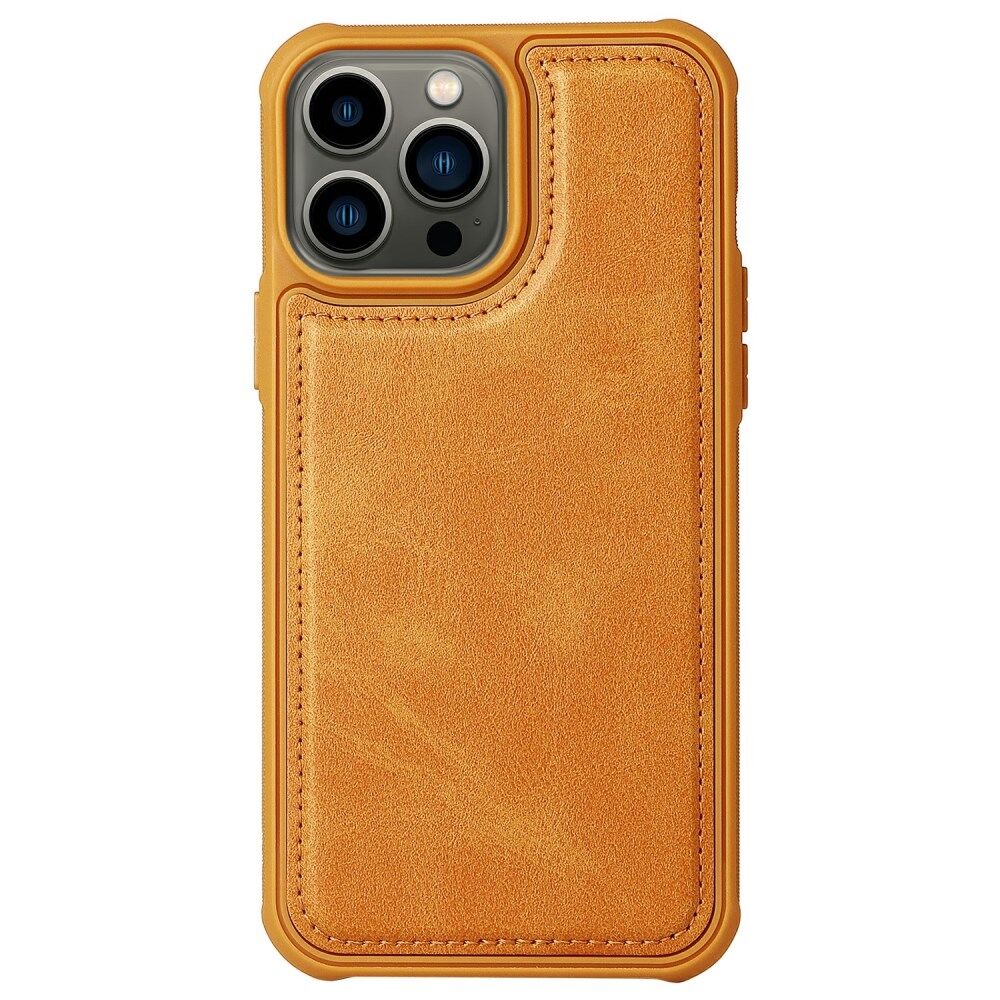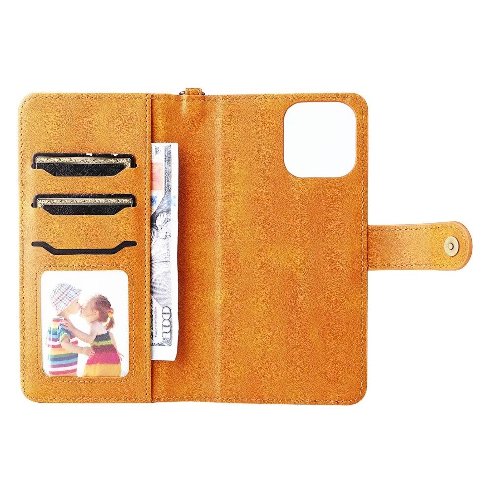 Detachable 2-in-1 Anti-Drop Button Closure Wrist Strap Multiple Card Slots Design Wallet Stand PU Leather Phone Case for iPhone 13 Pro 6.1 inch - Yellow