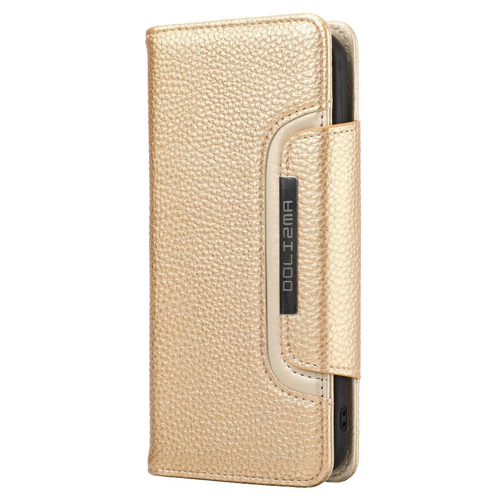 This case features two-in-one design with a leather wallet cover and a detachable leather coated TPU back case, which can be attached together by magnetism.