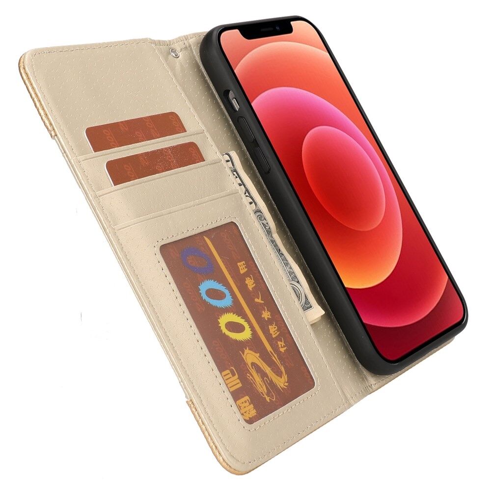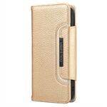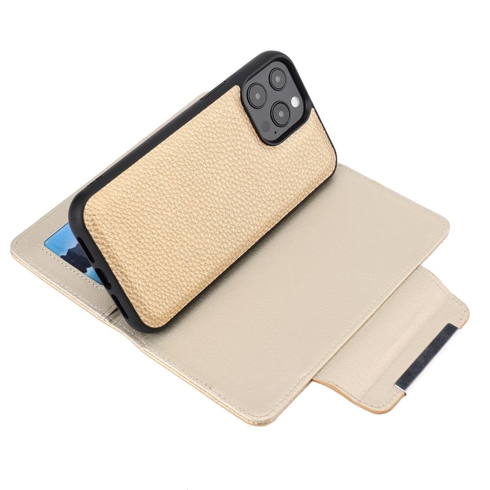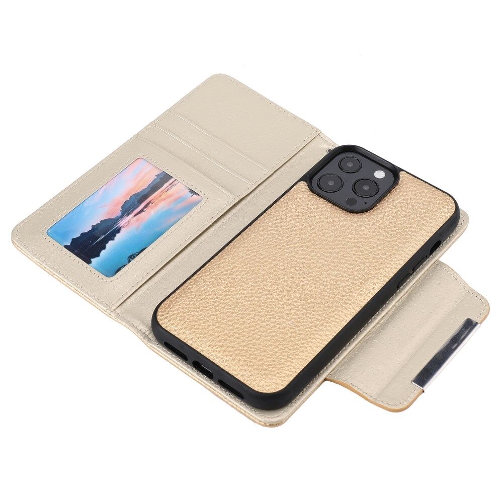 Detachable 2-in-1 Litchi Texture Wallet Stand Design Leather Case with TPU Phone Cover for iPhone 13 Pro 6.1 inch - Gold
