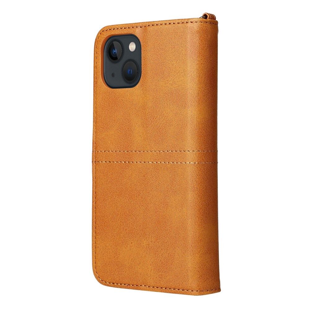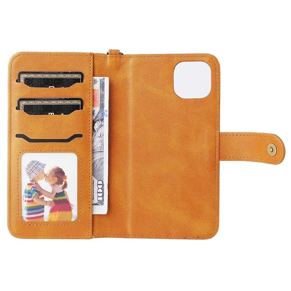 Detachable 2-in-1 Shockproof Scratch-Resistant Button Closure Handy Strap Multiple Card Slots Wallet Stand PU Leather Phone Case for iPhone 13 mini 5.4 inch - Yellow