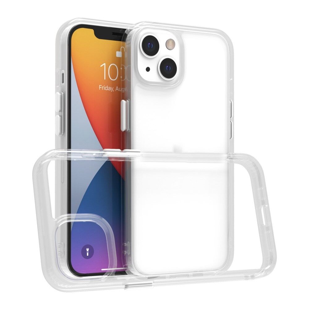 Detachable Buttons Light Slim TPU Frame + Tempered Glass Back Phone Case for iPhone 13 - White/Transparent