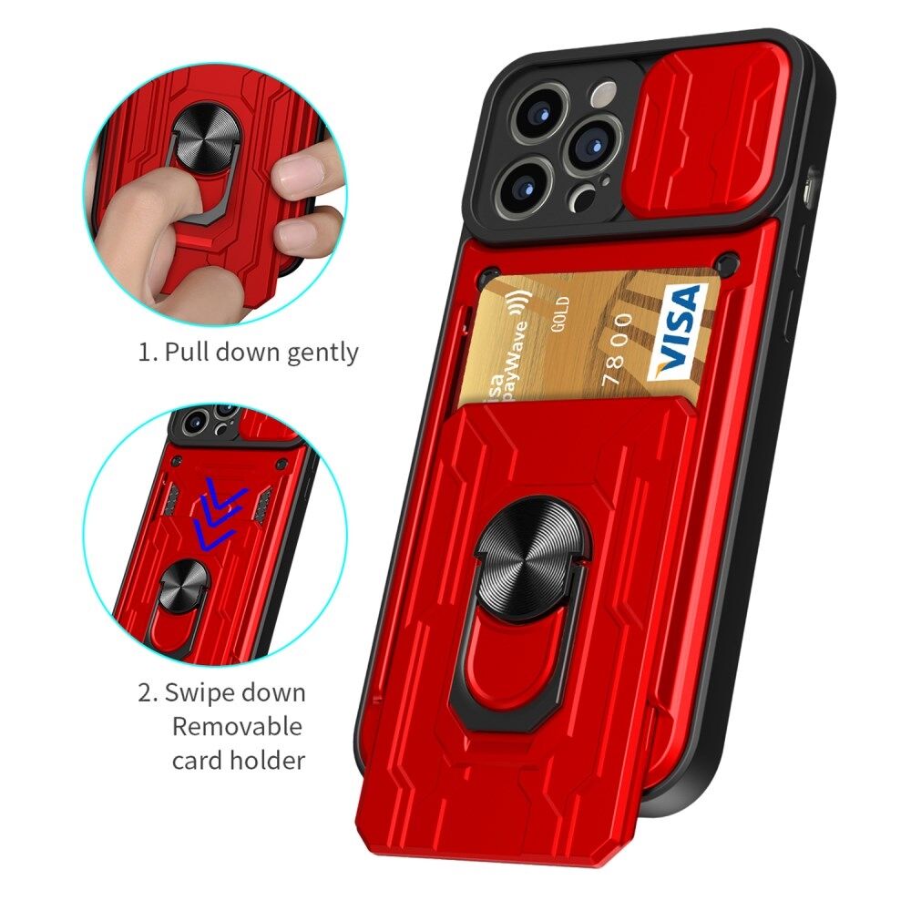 Detachable Card Slot Hard PC + Soft TPU Phone Case Kickstand Hybrid Cover with Camera Slide Cover for iPhone 13 Pro 6.1 inch