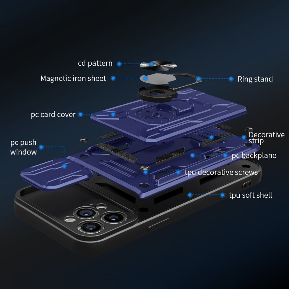 Detachable Card Slot Hard PC + Soft TPU Phone Case Kickstand Hybrid Cover with Camera Slide Cover for iPhone 13 Pro 6.1 inch