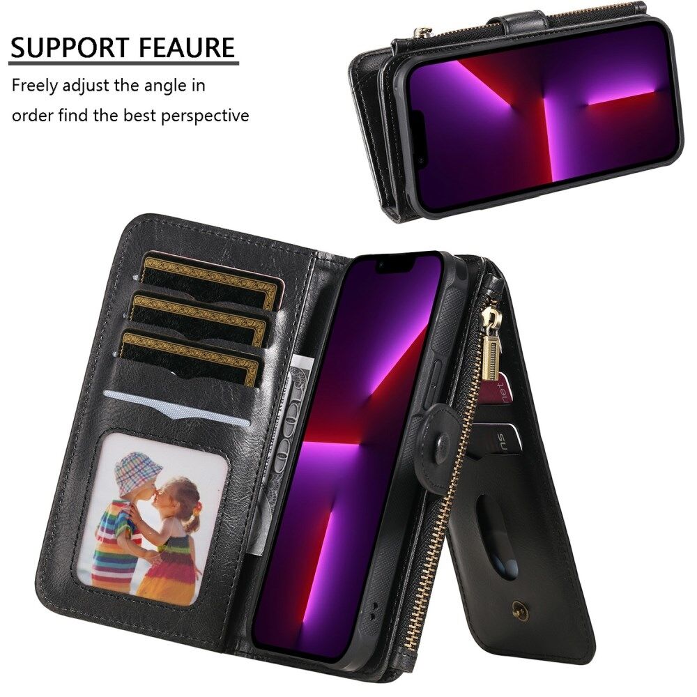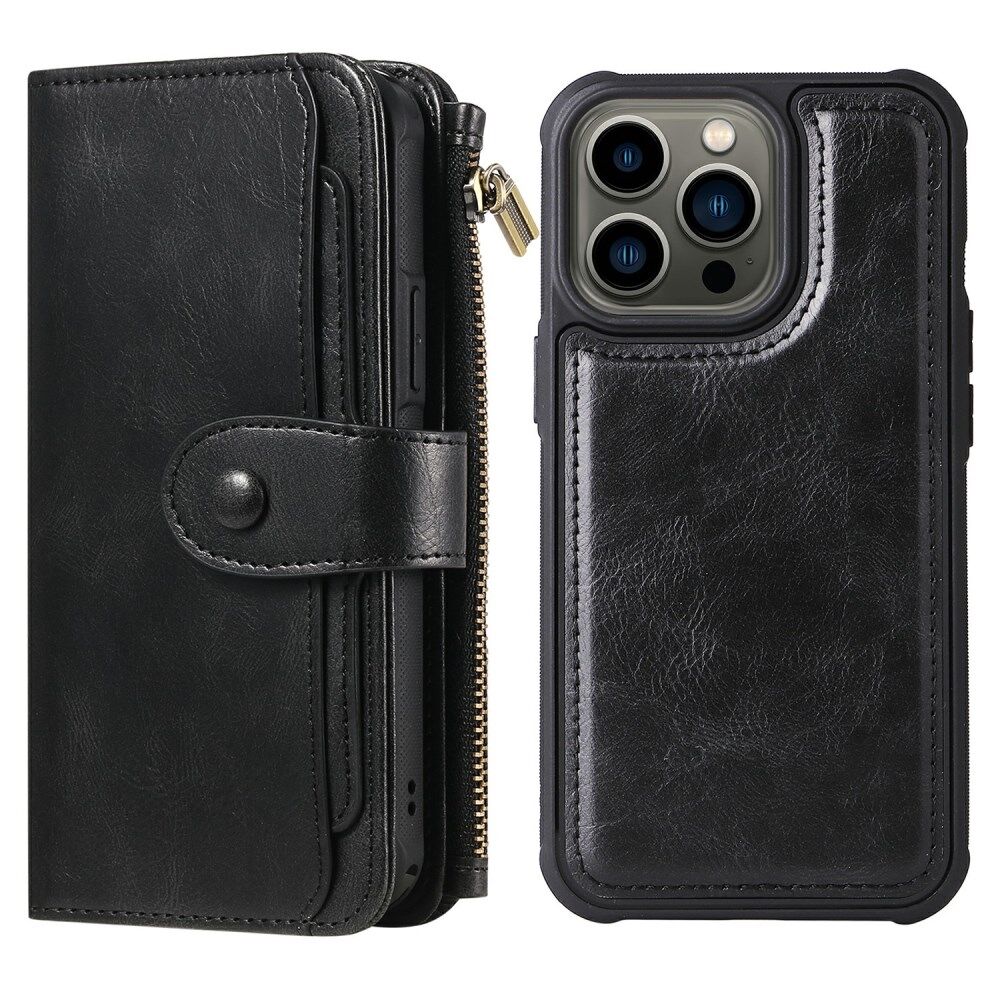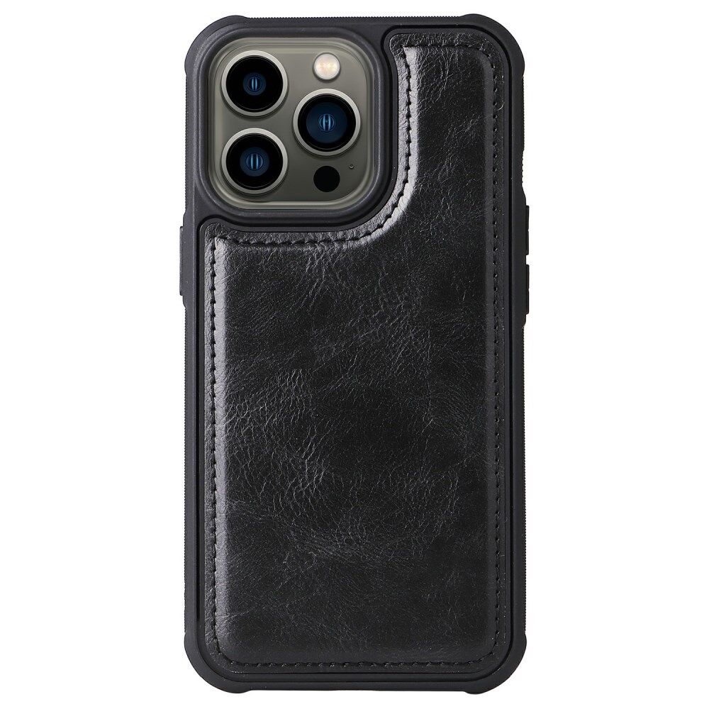 Detachable Inner Leather Coated Phone Case Vintage Style Horizontal/Vertical Flip Leather Shell with Pocket Design for iPhone 13 Pro 6.1 inch - Black