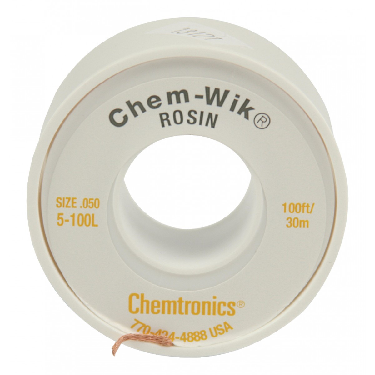 CHEM-WIK L2 1.5MM * 30MTR a non-activated, white rosin flux (in accordance with MIL-F-14256F, Type R) is laminated onto the entire braid to protect against oxidation and promote solderability. Ultra-pure, oxygen-free, copper braid quickly and completely removes solder from circuit boards and components. Its fast wicking action protects components from harmful heat damage.
