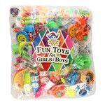Make a surprising grab bag with these 100 gifts! Yoyos, whistles, jumping frogs, rattles, samba balls, stair springs, bouncing balls, watches and much more fun is in the bag with 100 gifts. A super idea for a dress market or during a party!