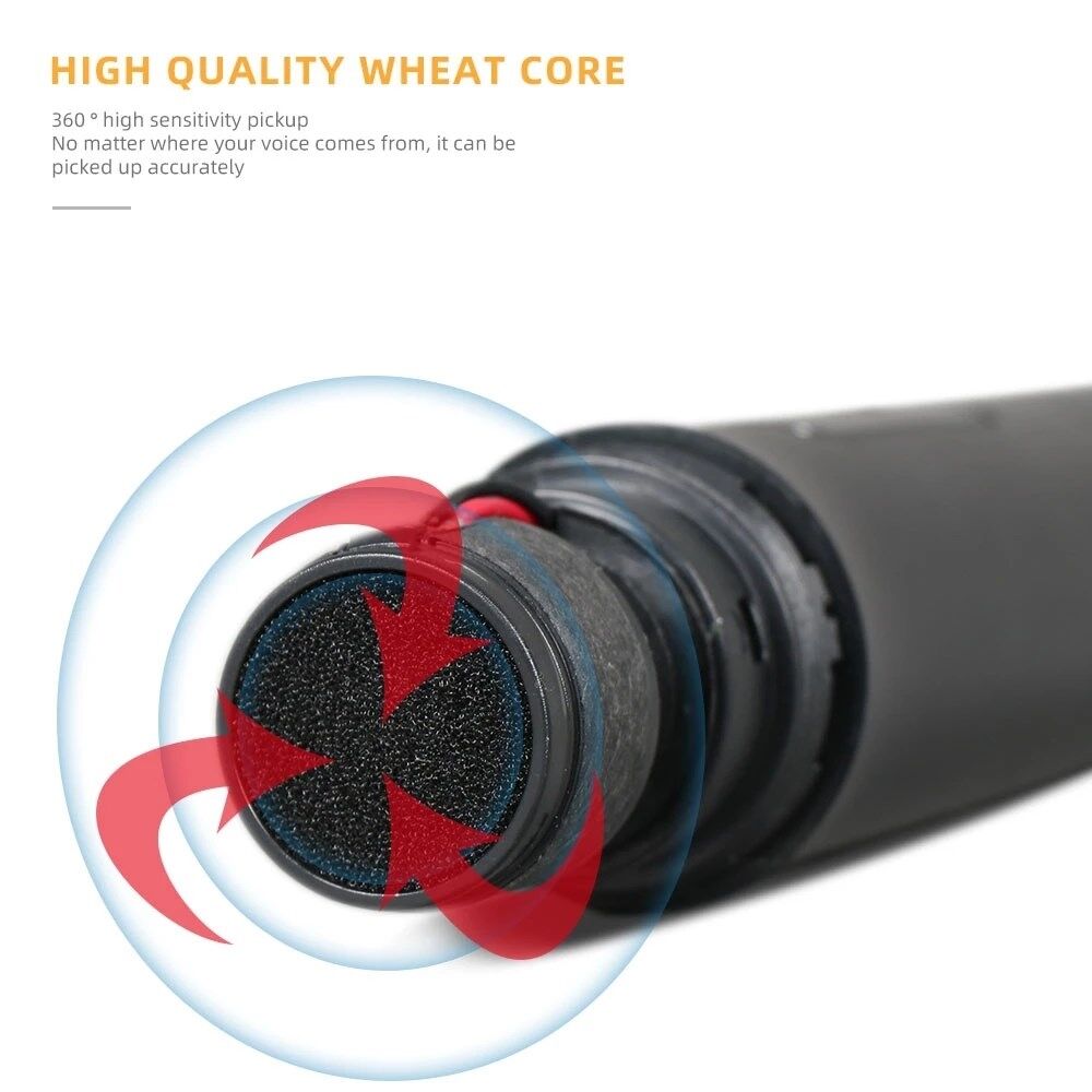 • UHF dual channel microphones offer a frequency range from 500 to 980mHz, giving a strong and vigorous sound quality
