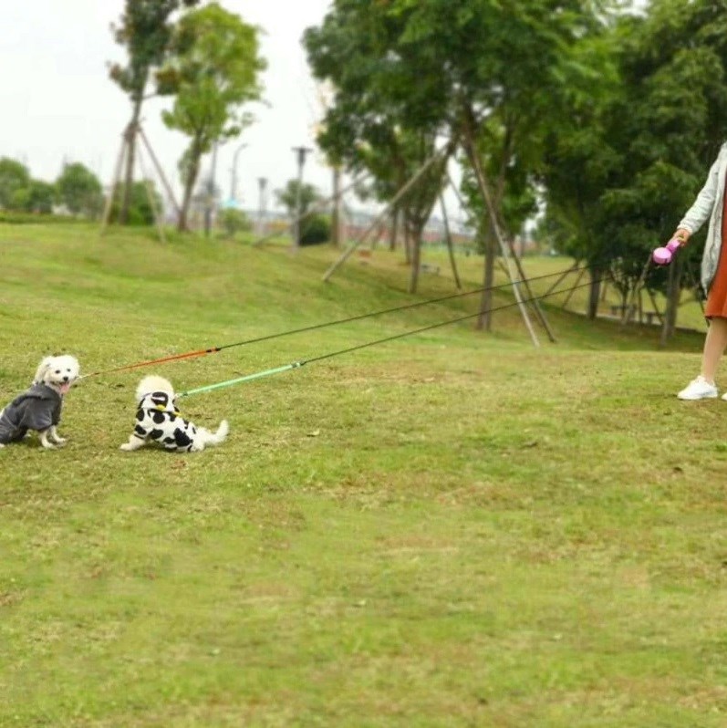 With this flexible dog leash you can pet two dogs at the same time with just one leash.