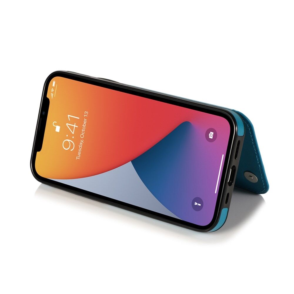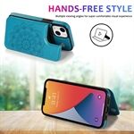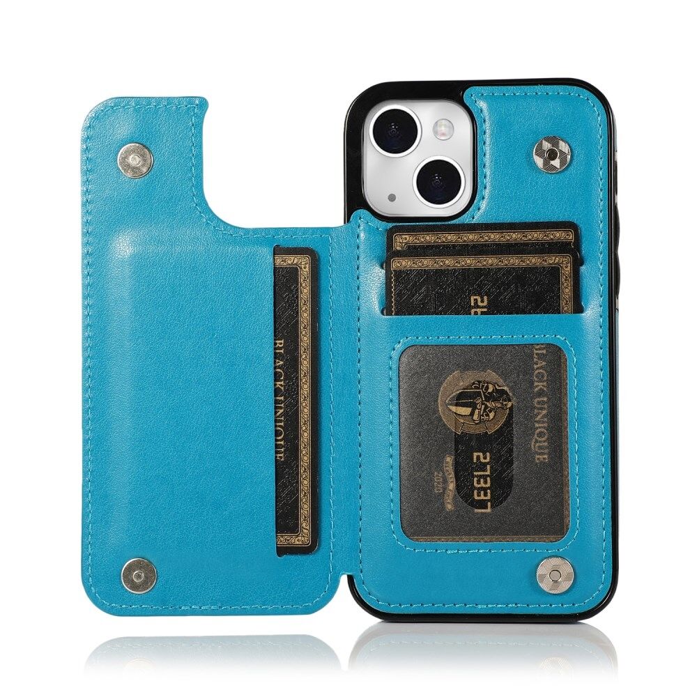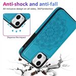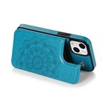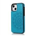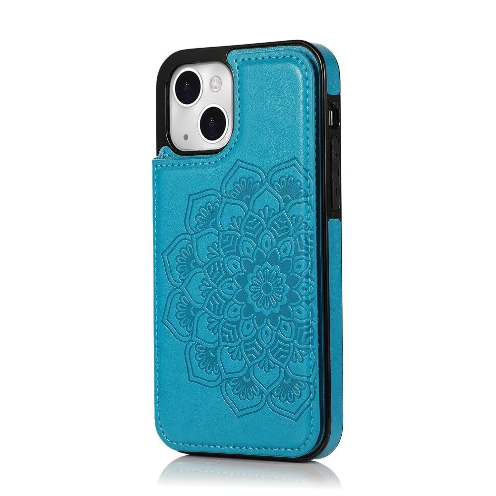 Double Magnetic Buttons PU Leather + TPU Phone Case Imprinted Mandala Flower Kickstand Card Holder Scratch-resistant Phone Cover for iPhone 13 6.1 inch - Blue