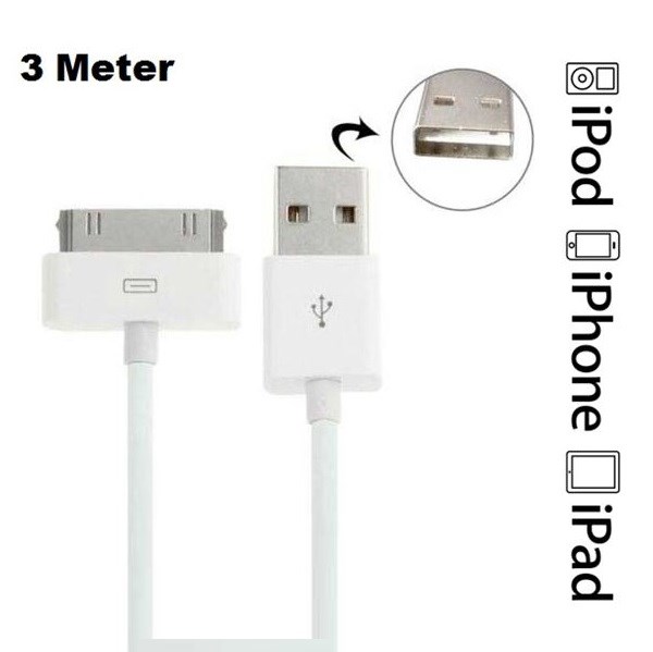 Double side iPod / iPhone / iPad - USB data cable 3 meters in high quality