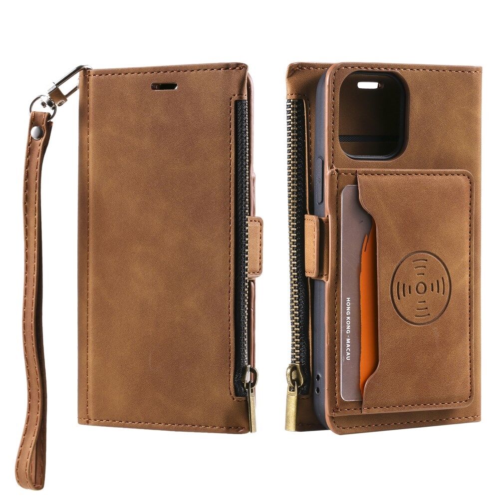 Drop-resistant Protective Leather Phone Case Kickstand with Zipper Wallet for iPhone 11 6.1 inch - Brown