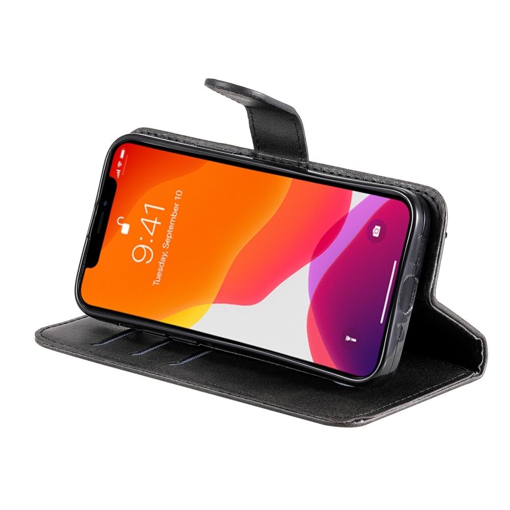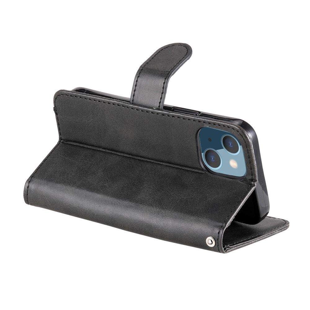Drop-resistant Zipper Pocket Leather Wallet Phone Shell for iPhone 13 mini 5.4 inch - Black