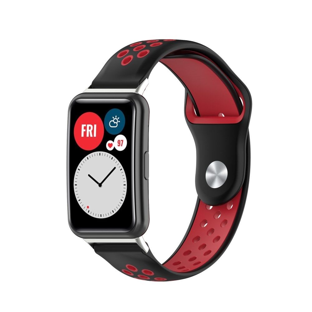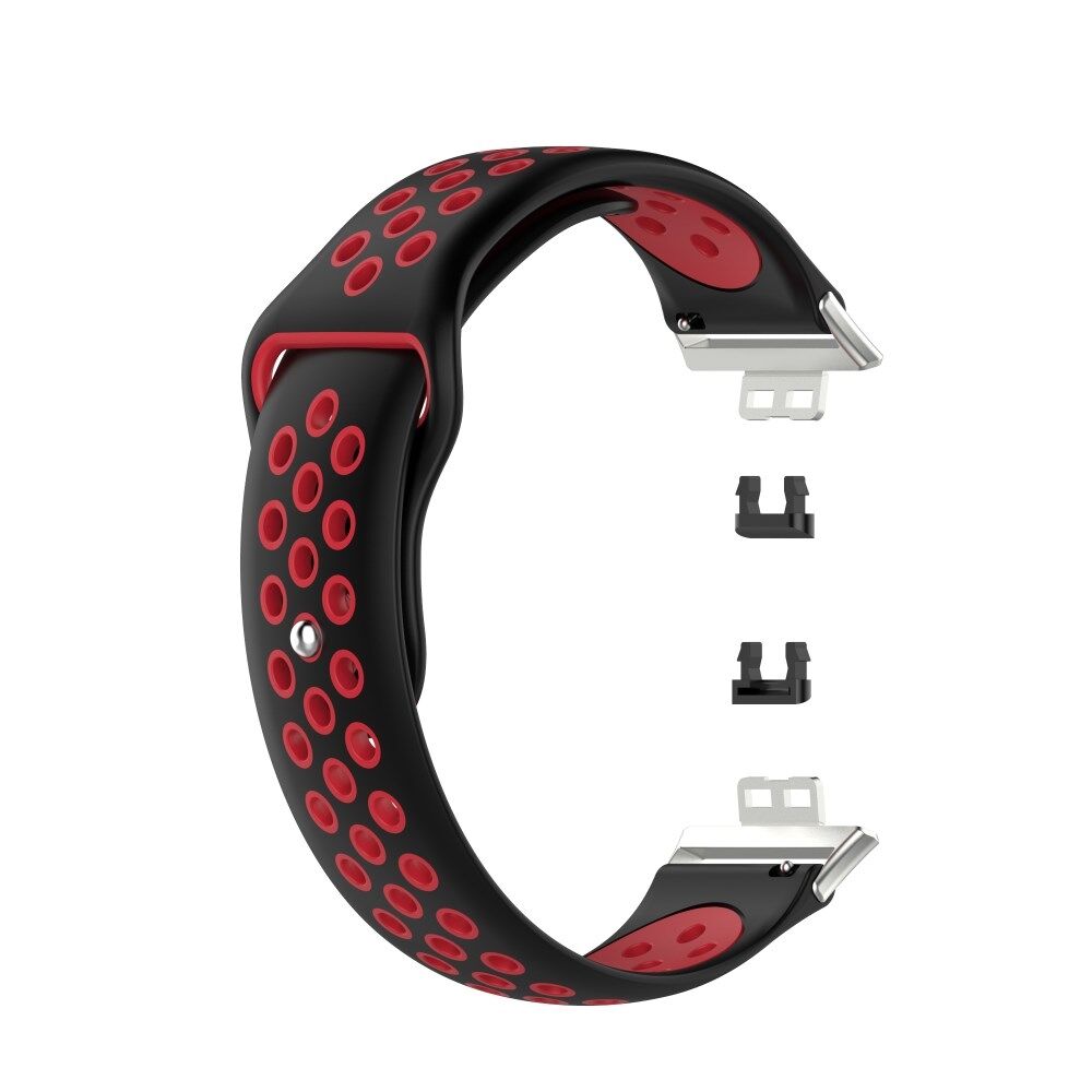 Dual Color Silicone Sport Watch Band Replacement Wrist Strap for Huawei Watch Fit TIA-B09 - Black/Red