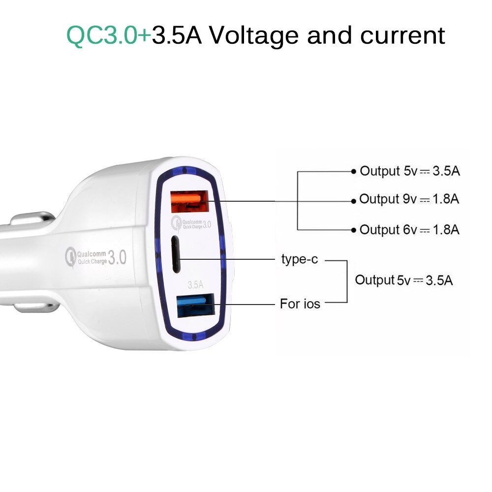 • QC 3.0 USB + USB port + Type-C port can fast charge 3 devices at the same time