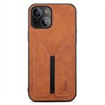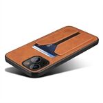 Elastic Card Slot Slim PU Leather Coated Soft TPU + Hard PC Shockproof Phone Case for iPhone 13 6.1 inch - Brown