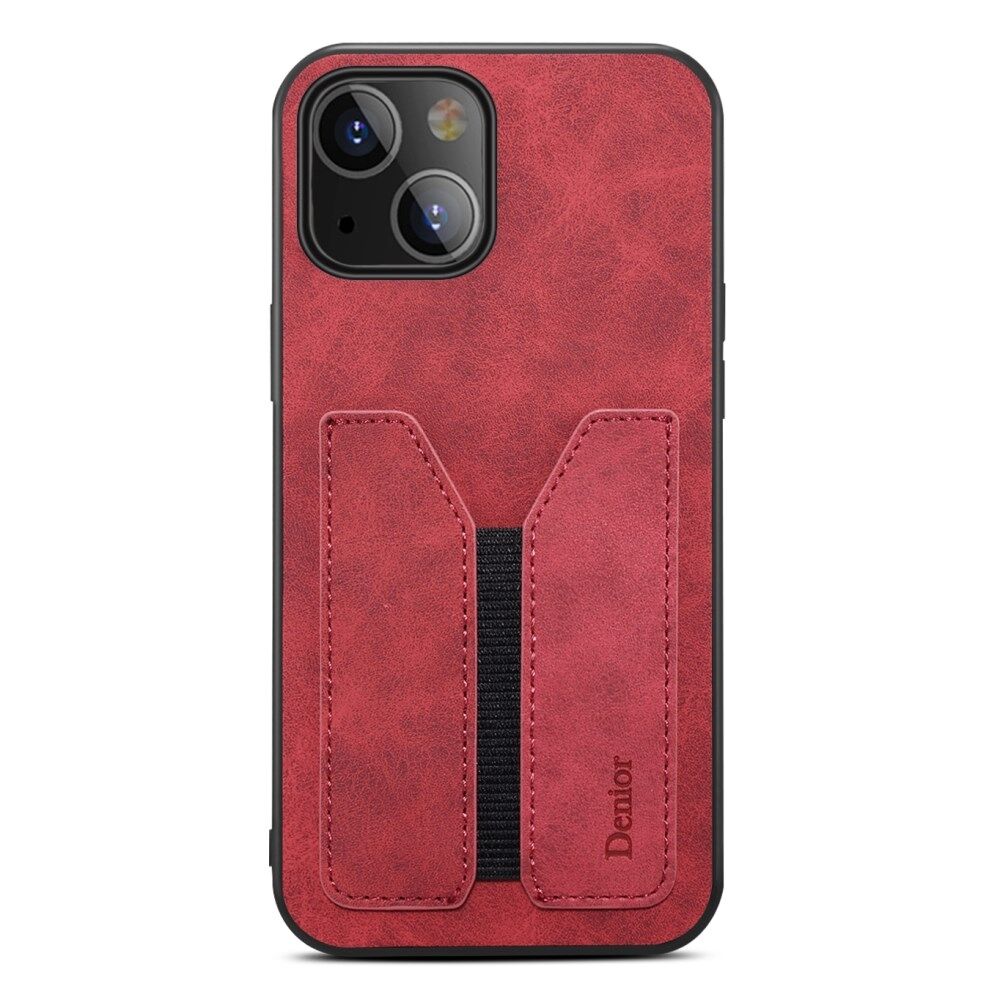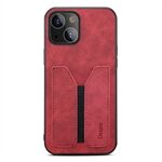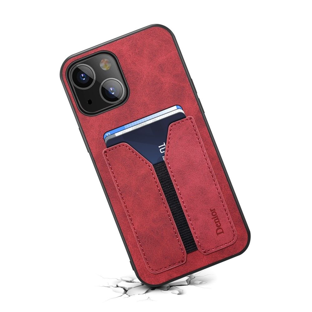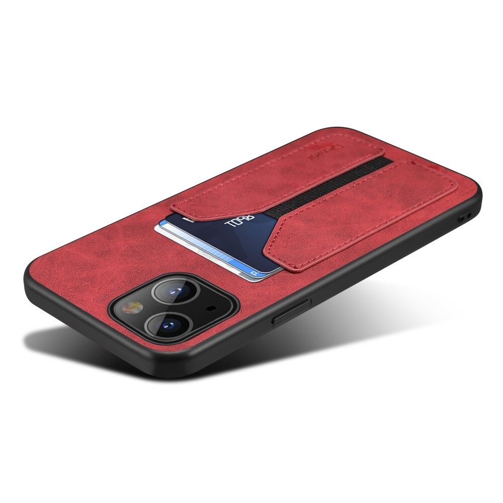 Elastic Card Slot Slim PU Leather Coated Soft TPU + Hard PC Shockproof Phone Case for iPhone 13 6.1 inch - Red