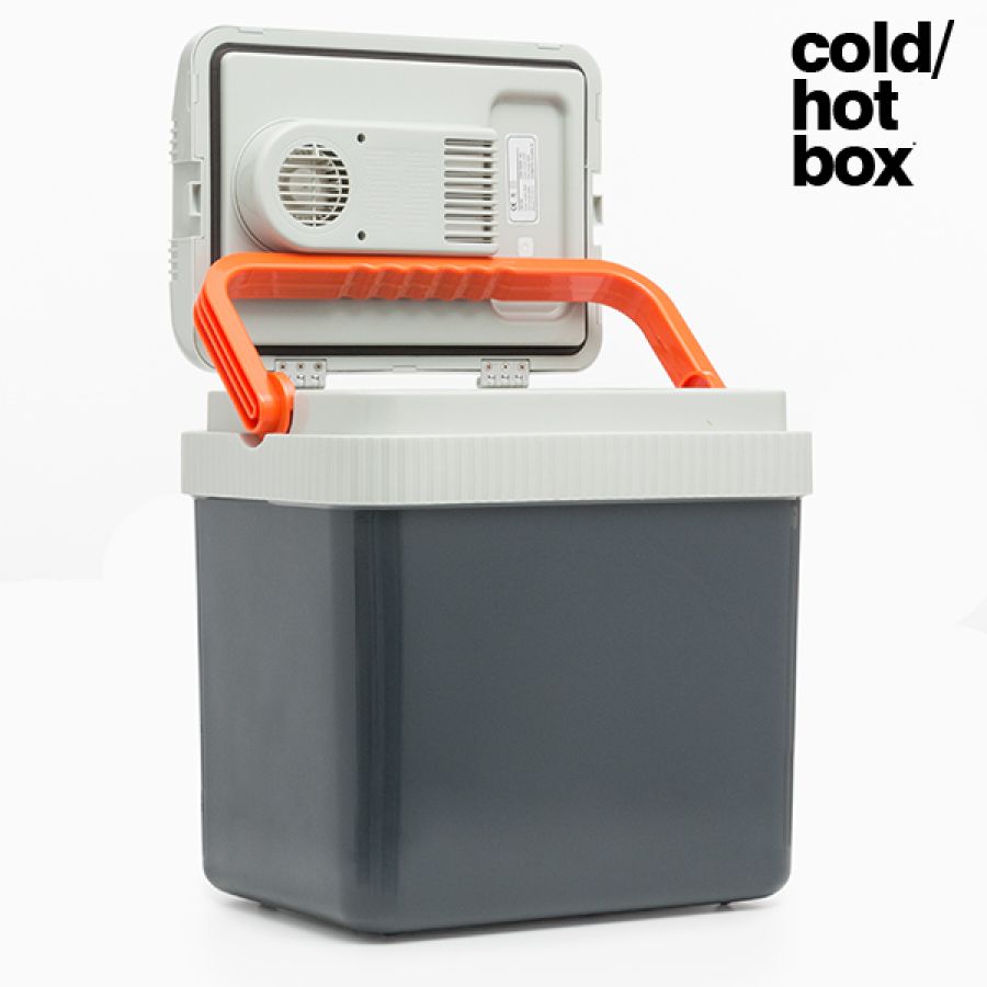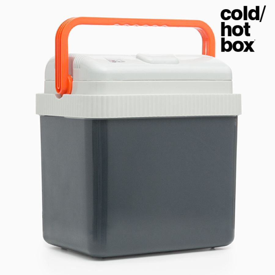Electric Cooling Bag 24 L Really cool fridge / fridge in dark gray and light gray colors with orange handle.