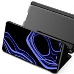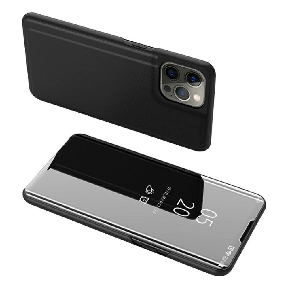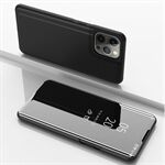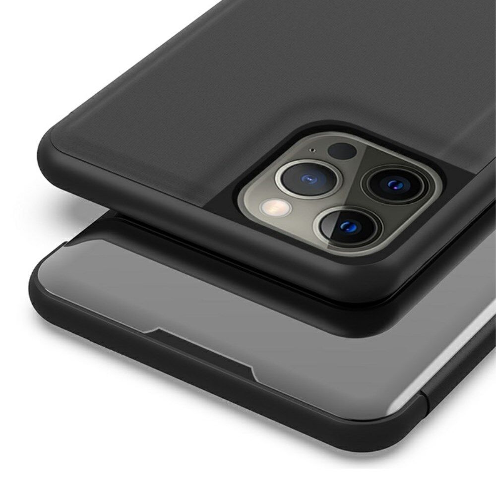 Electroplating Mirror Surface Leather Phone Case Stand Shell with View Window for iPhone 13 Pro 6.1 inch - Black