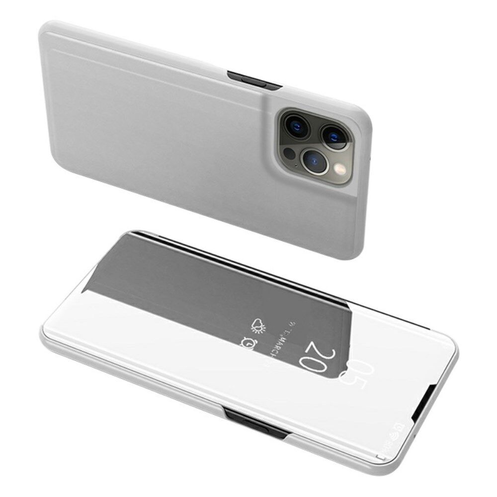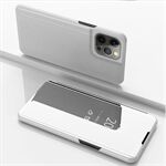 Electroplating Mirror Surface Leather Phone Case Stand Shell with View Window for iPhone 13 Pro 6.1 inch - Silver