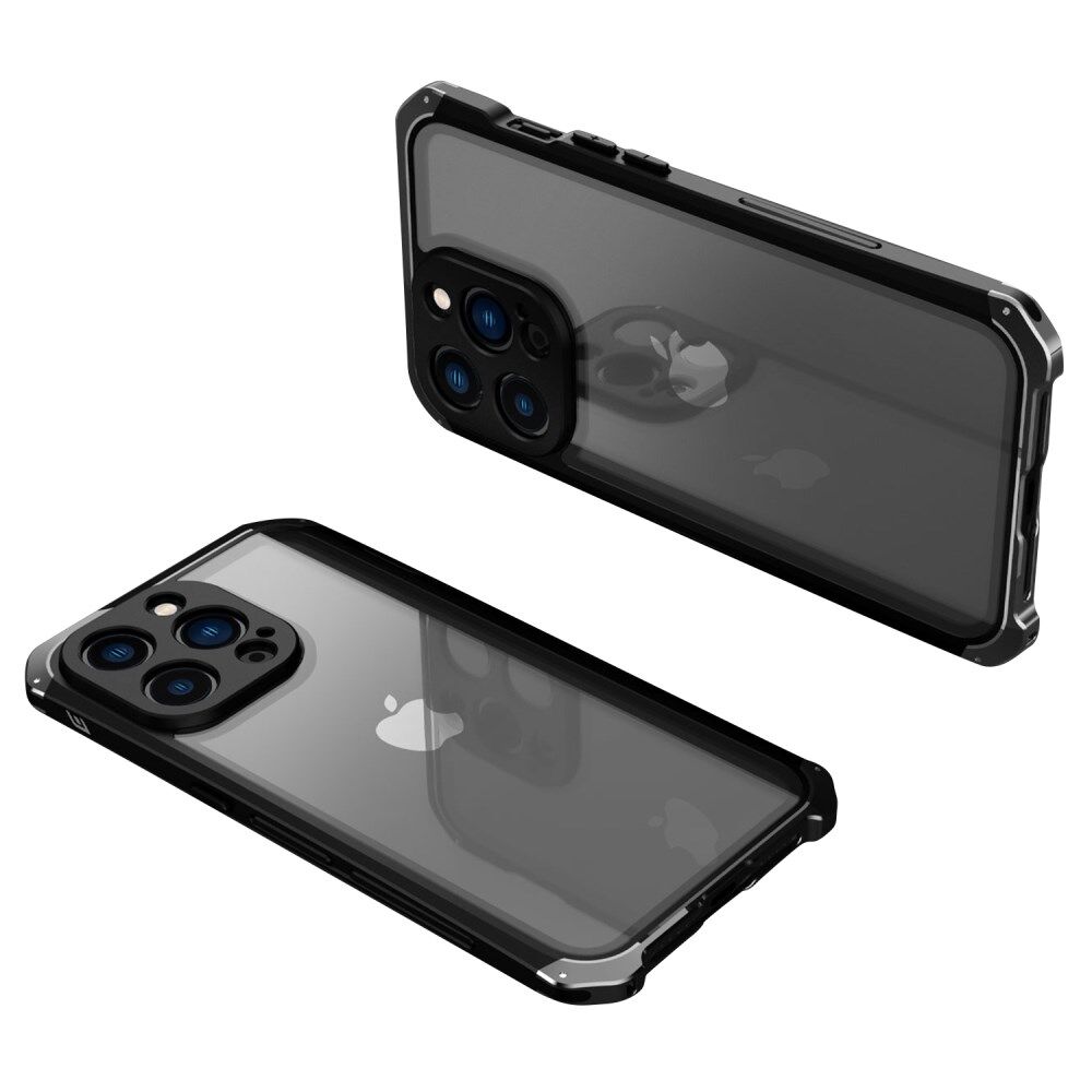 ELEMENT BOX For iPhone 14 Pro Drop Protection 3-Piece Design Mobile Cover Metal +Tempered Glass Cell Phone Back Case Cover - Black