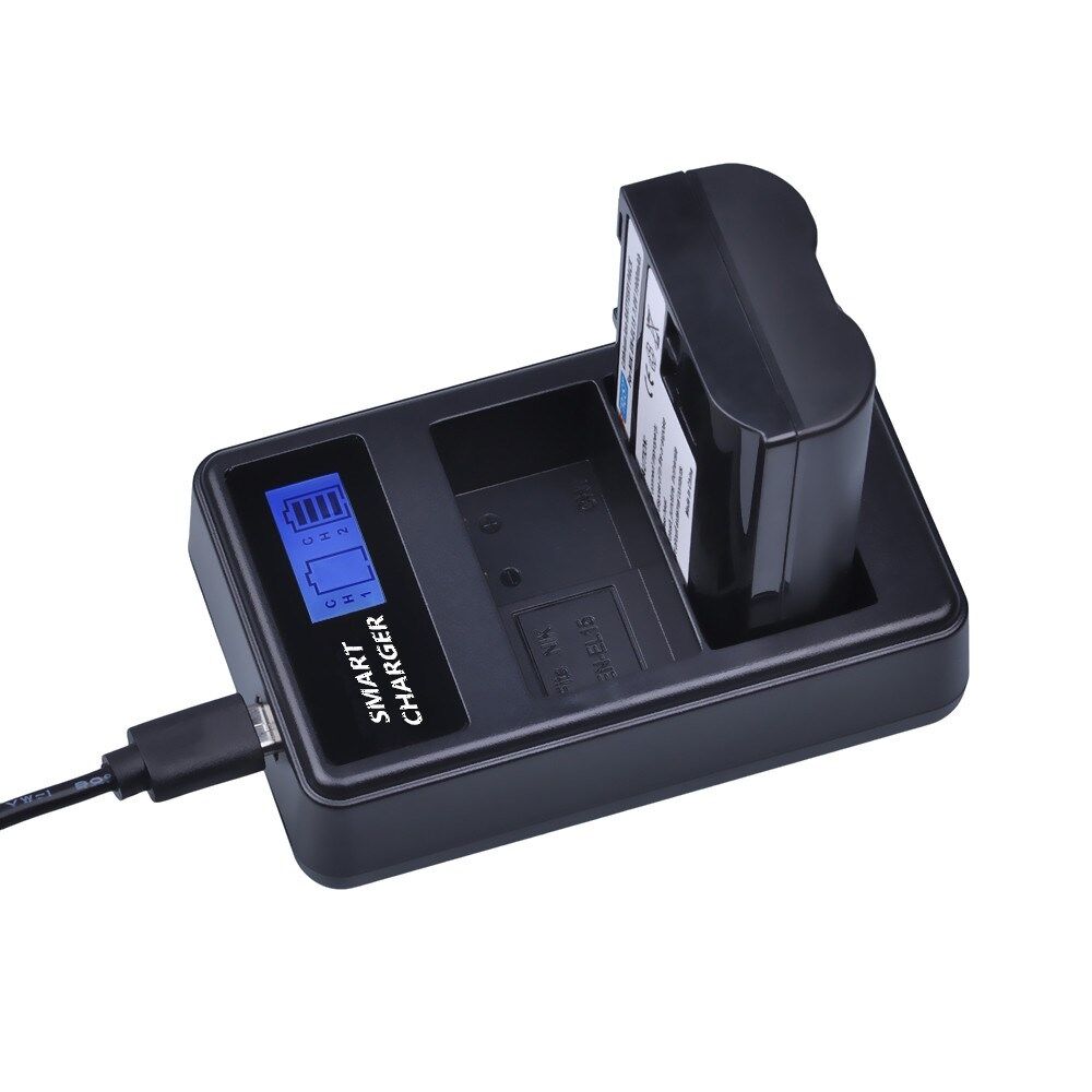 EN-EL15 Battery 2-Bay USB Charger with LCD Display for Nikon D7000 D800 D800E D600 V1