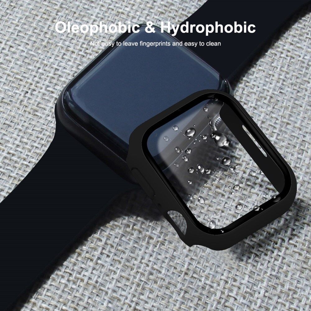 ENKAY 2-in-1 Design Touch-Sensitive Rubberized Hard PC Case with 9H Tempered Glass Screen Protector for Apple Watch Series 7 45mm