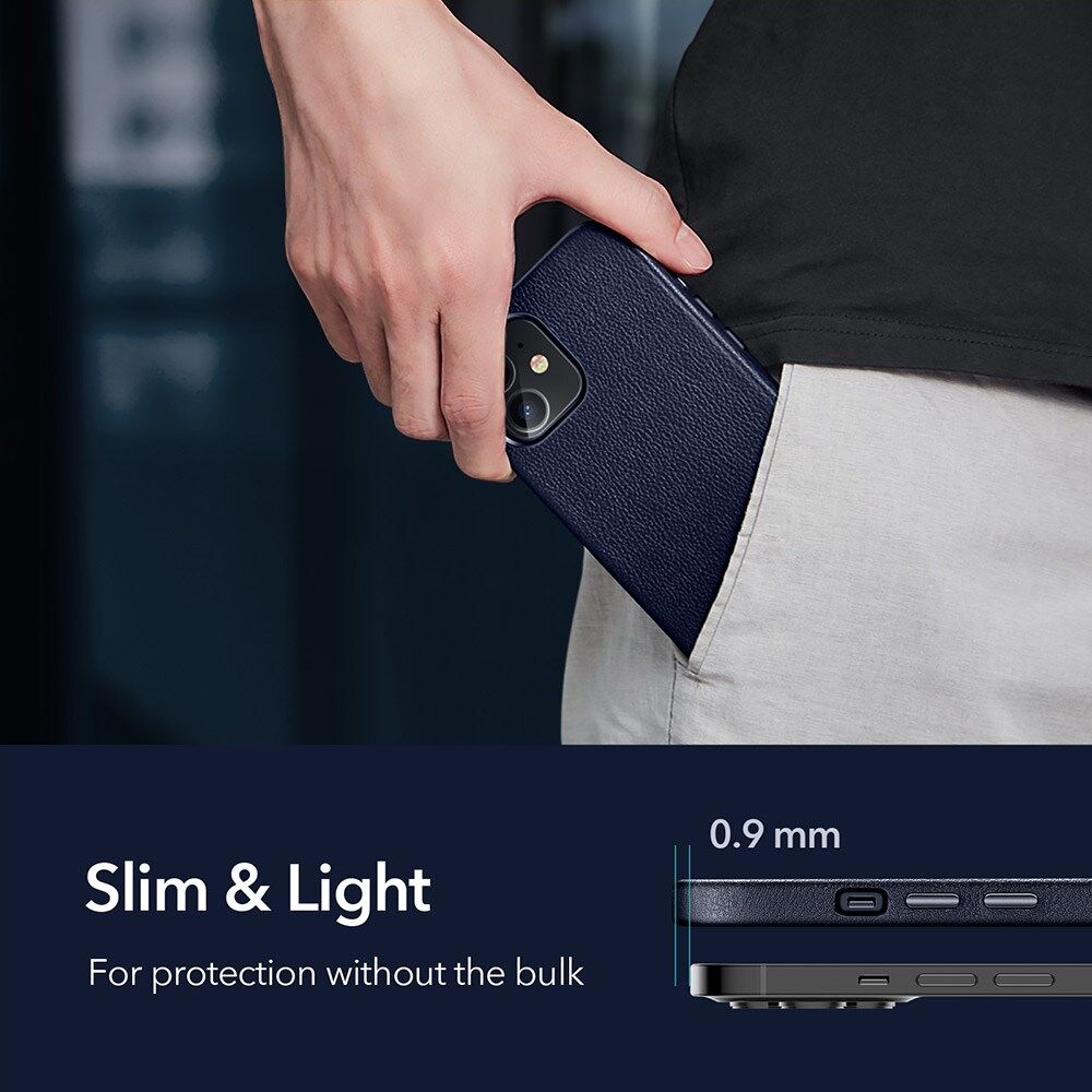ESR Shockproof Genuine Leather Phone Case Protector for iPhone 12 mini - Blue