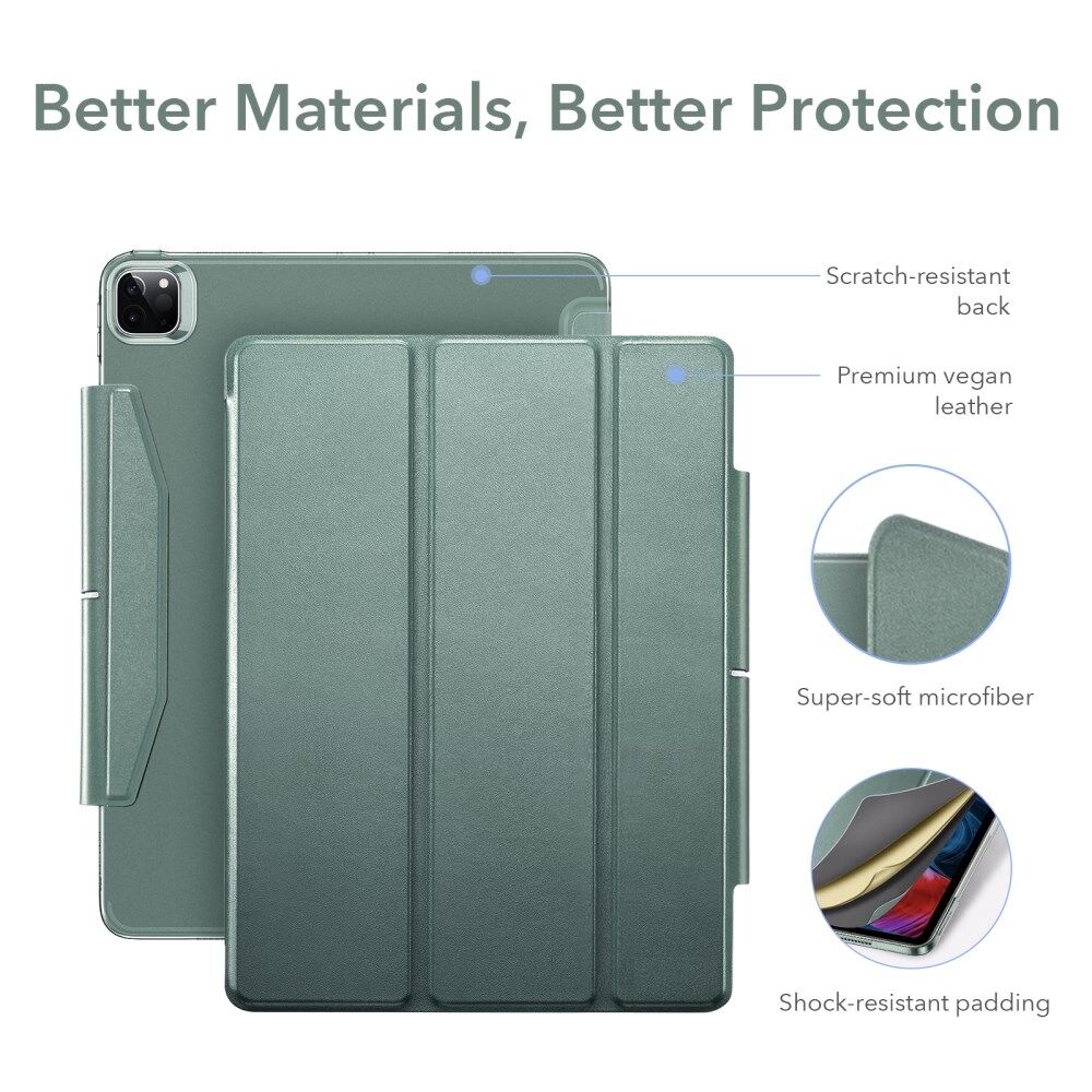 ESR Yippee Series Trifold Convenient Magnetic Attachment Smart Case for iPad Pro 12.9-inch (2021) - Forest Green