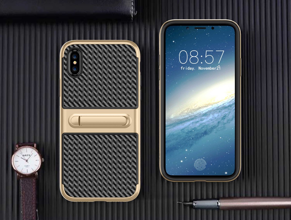 Fancy Slim Cover in TPU Plastic and Carbon for iPhone X / iPhone Xs - Gold