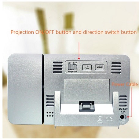 Built-in thermometer and moisture meter. Display both time and temperature on the wall with the projector. Temperatures can appear in Celsius or Fahrenheit.