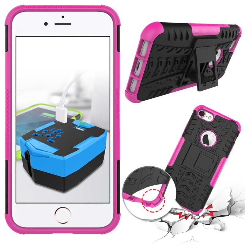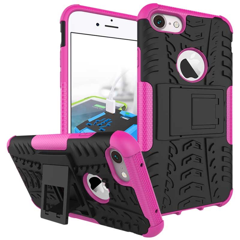 Fashion Fit Cover in Silicone and Plastic with Stand Function for iPhone 7 / iPhone 8 - Pink