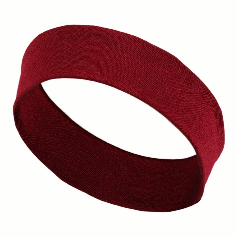 FD065 Solid Color Women Sports Headband Moisture Wicking Elastic Sweatband Hair Band - Wine Red