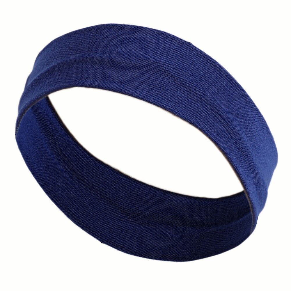 FD065 Solid Color Women Sports Headband Moisture Wicking Elastic Sweatband Hair Band - Blue