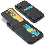 FIERRE SHANN Card Slots Phone Cover for iPhone 14 Kickstand RFID Blocking PU Leather+TPU Phone Case - Black