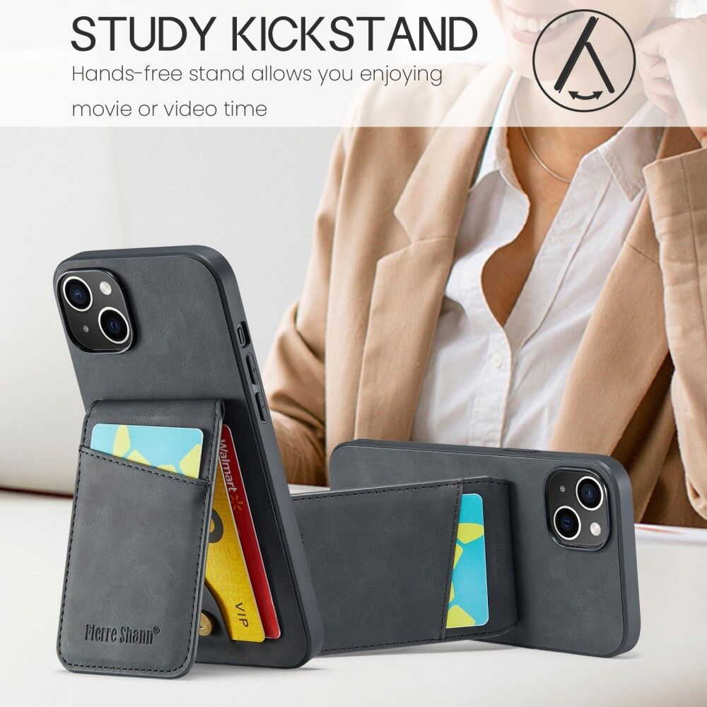 FIERRE SHANN Card Slots Phone Cover for iPhone 14 Kickstand RFID Blocking PU Leather+TPU Phone Case