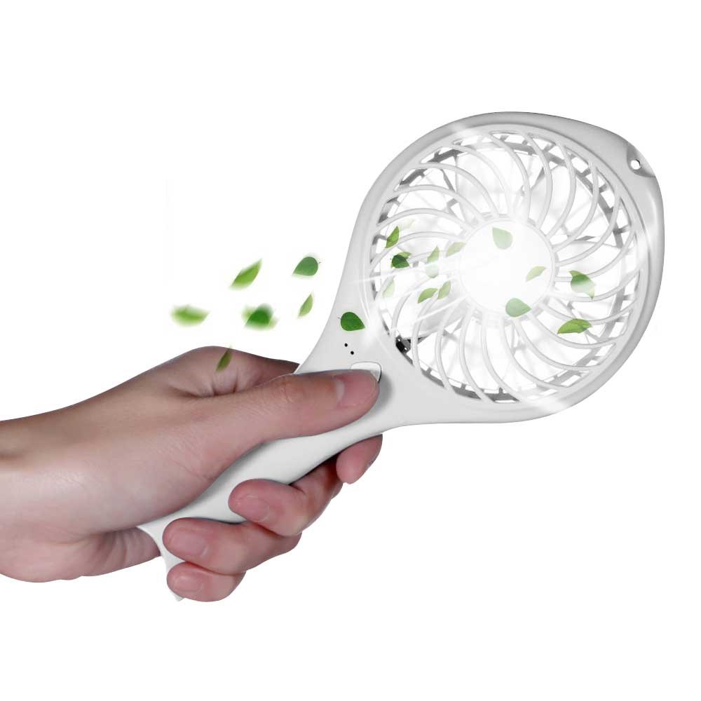 The handle can be folded to allow the fan to stand on the table.