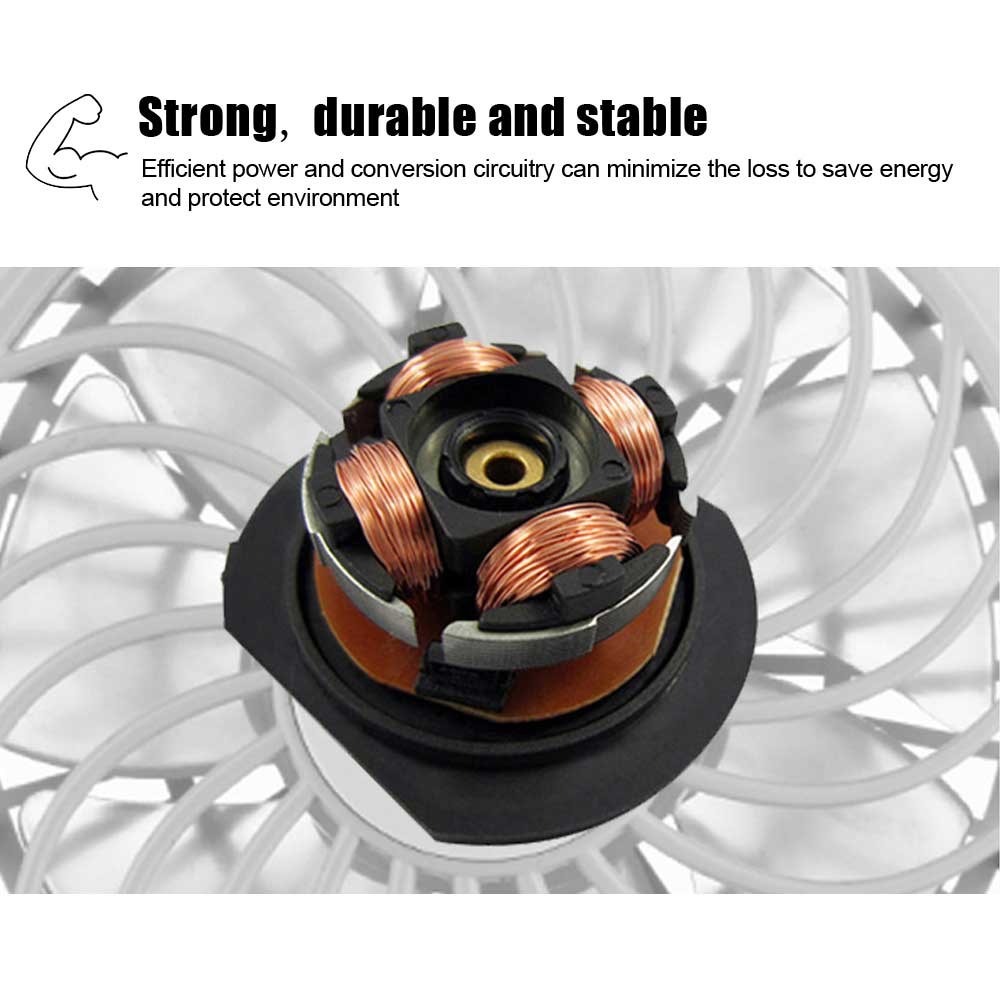 With USB charging and the built-in rechargeable 1500 mAh Li-ion battery, the fan provides fresh air for up to 4 hours.