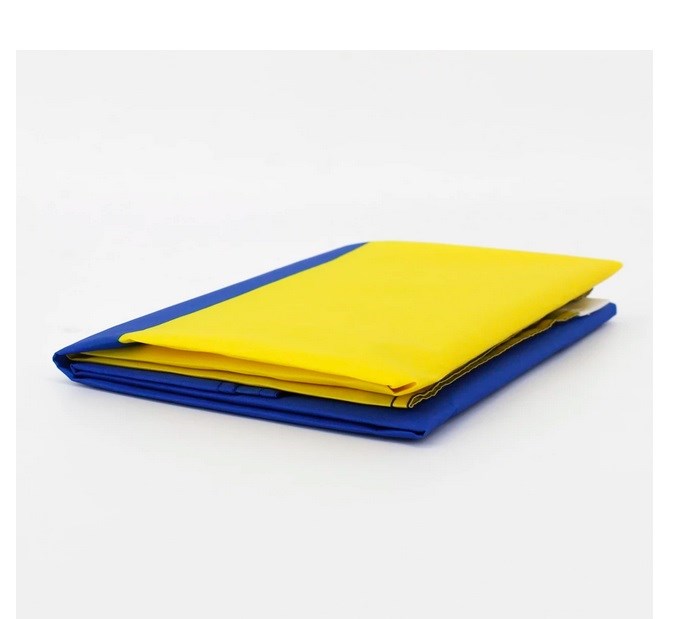 Each flag is attached to the string and the entire banner measures 21 meters.
