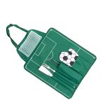 A unique grill set consisting of an apron with a half football field with four pockets for spatula, fork, seaweed and barbecue gloves.
